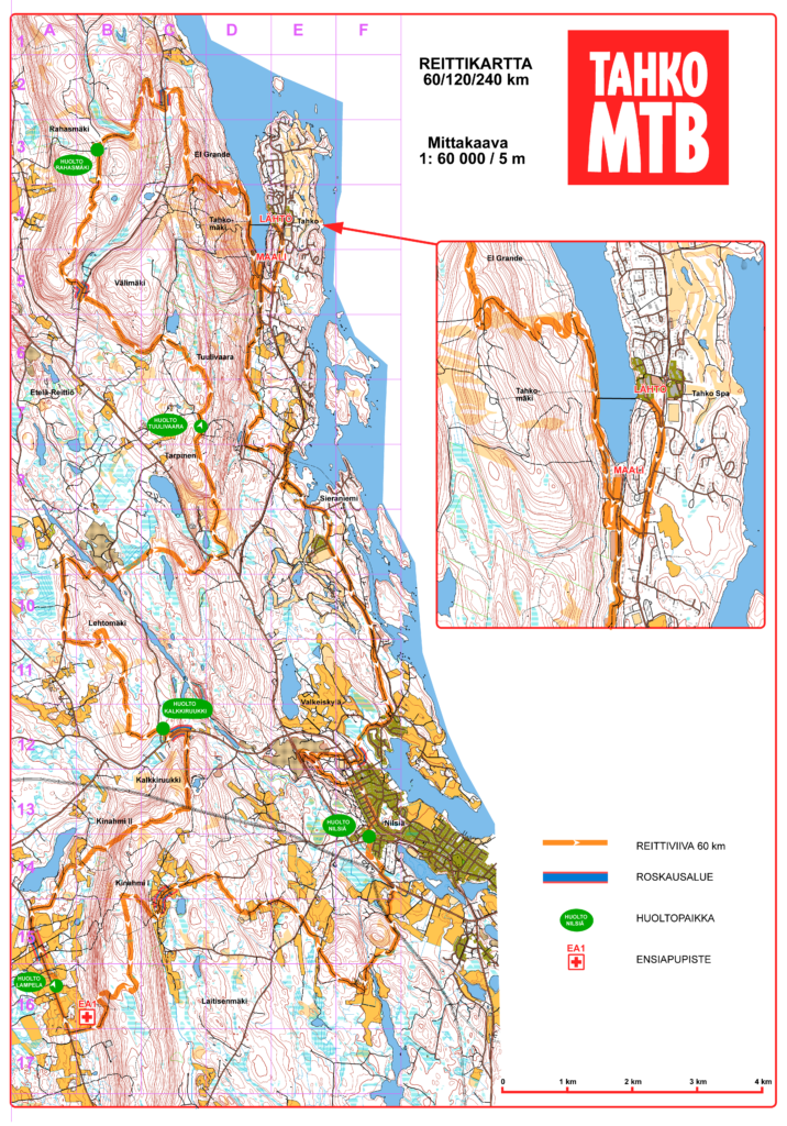 Matka jatkuu hiihtolatupohjia, metsäautoteitä ja polkuja pitkin Kalkkiruukin, Lehtomäen ja Tuulivaaran kautta Rahasmäen huoltoon, josta alkaa pitkä alamäkivoittoinen pätkä Tahkon juurelle. Edessä on legendaarinen El Grande, joka on 3 km yhtämittainen nousu Tahkon huipulle. Viimestään tässä vaiheessa alkaa urheilujuomat tiristä ajajista.